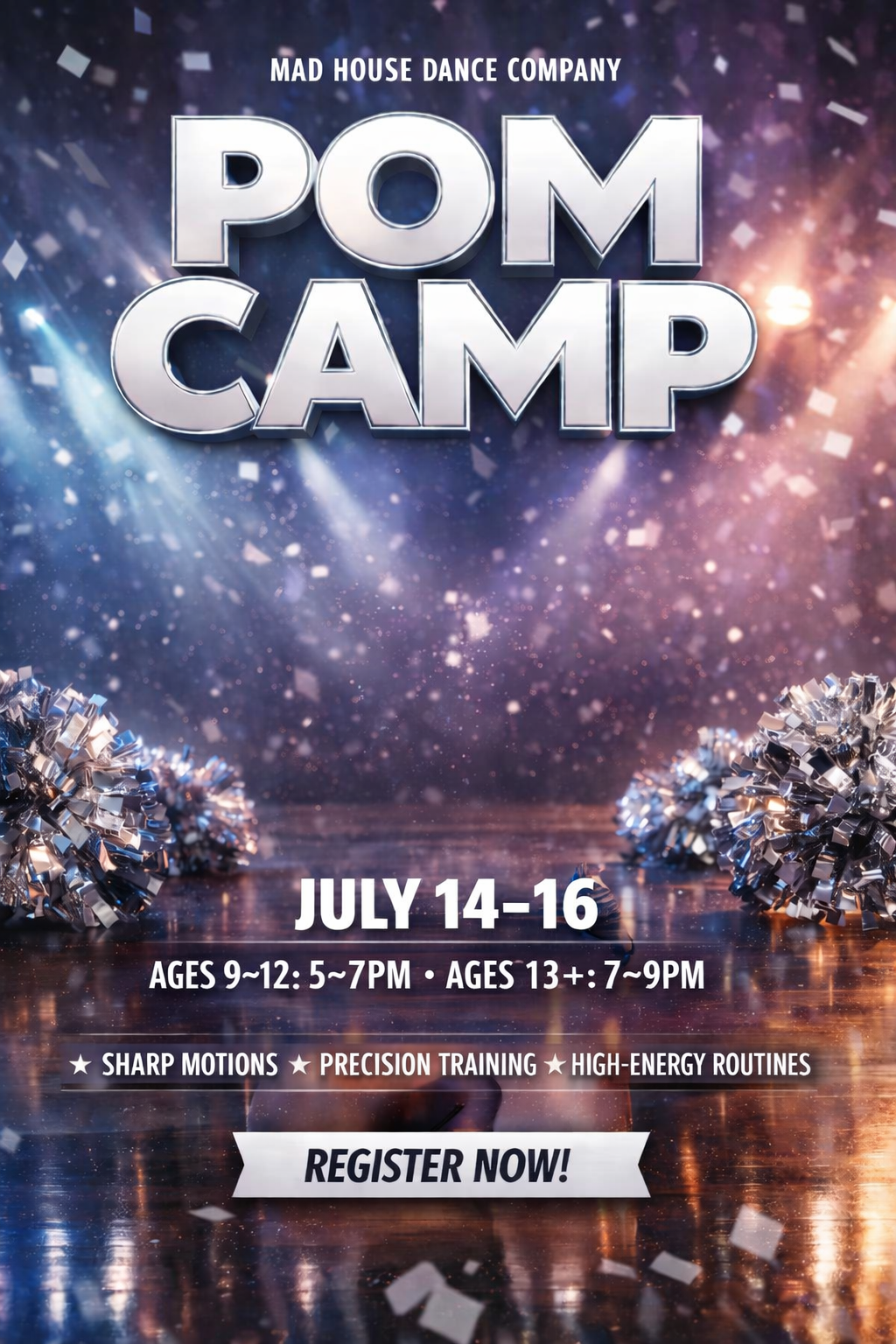 Pom Camp is designed for dancers ready to build precision, power, and performance quality in a focused, high-energy environment. This multi-day camp helps dancers refine technique while learning dynamic choreography.