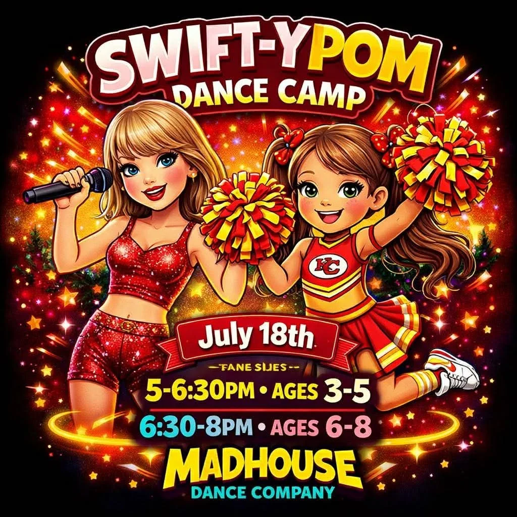 Swifty Pom Dance Camp combines high-energy pom technique with fun, upbeat choreography inspired by pop performance style. Dancers will build confidence, learn sharp motions, and perform like theyβre on stage.