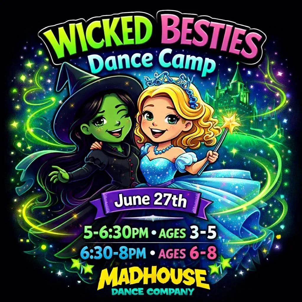 Wicked Besties Dance Camp is a high-energy, themed experience inspired by powerful characters, storytelling, and dynamic movement. Dancers will explore performance, expression, and confidence through fun choreography and interactive activities.