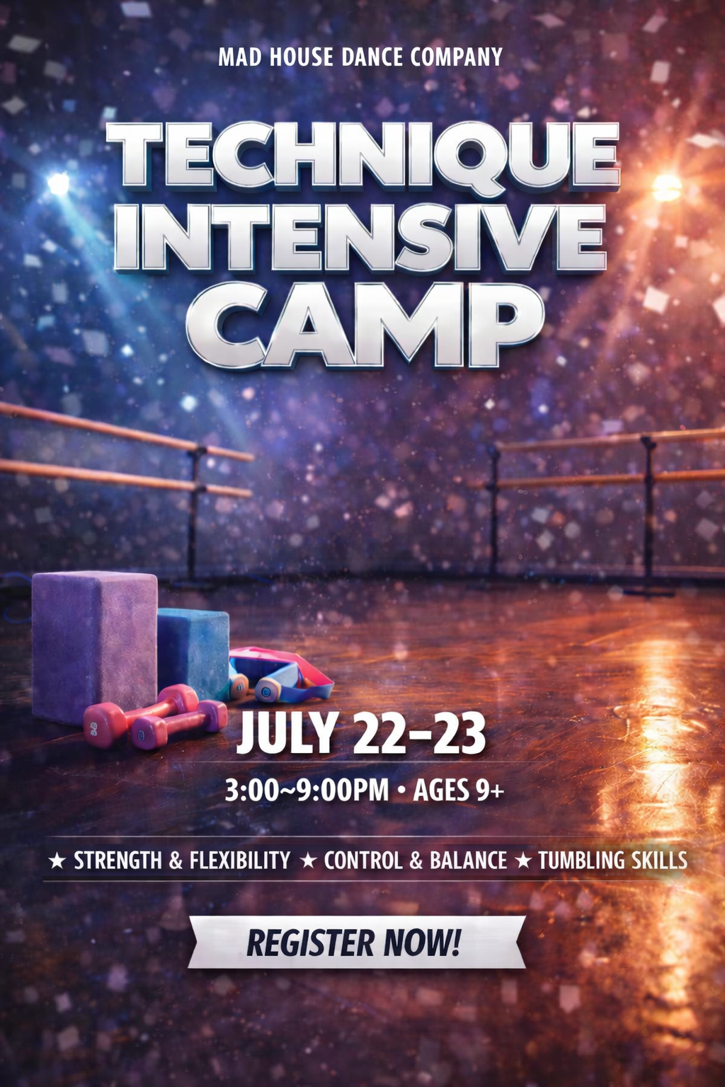 Our Technique Intensive Camp is designed for dancers who are ready to take their training to the next level. This focused, high-level environment challenges dancers to improve strength, control, and technical execution in a short amount of time.